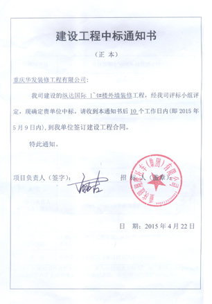附:中標通知書
