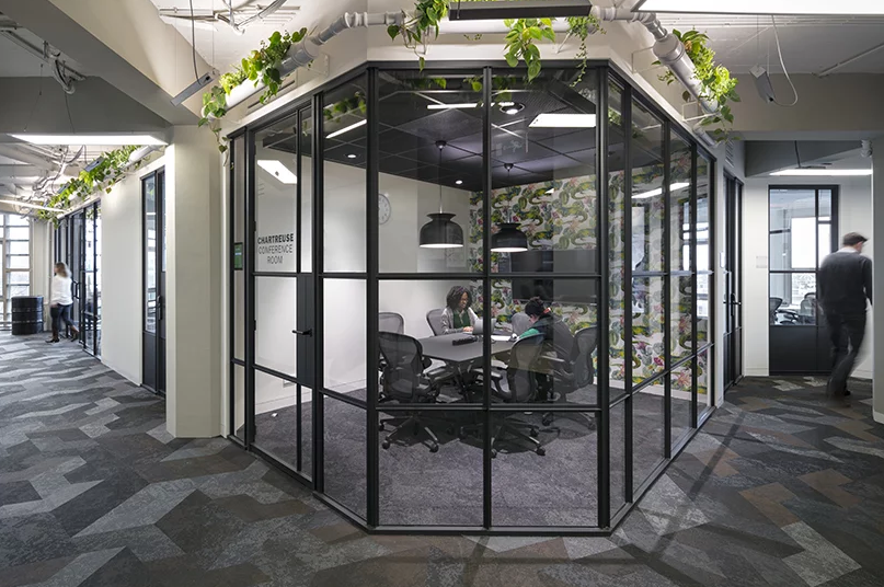 在整個辦公室裝修中,可以找到創新的綠色應用,如走廊的管廊、植物墻和新開發的綠色財富枝形吊燈,廚房自動澆水。辦公室裝修Kraijvanger建筑師還與Artbinder合作,該公司將當地藝術家的藝術與工作室水療結合起來,為城市叢林客廳提供獨特的辦公室裝修理念。