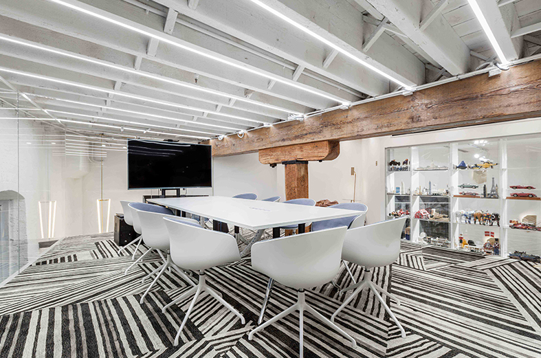 游客看到的第一個辦公室裝修設計特點是入口區域故意變暗。全黑的空間帶來一種“距離感”,可以調解街道和辦公室。然而,隨著電子推拉門逐漸打開,迎接客人的將是一個明亮而開放的辦公室裝修設計,層高4.5米。暴露在外的百年前的木結構和保留在空間中的木地板,讓游客能夠感覺到強烈的歷史感。
